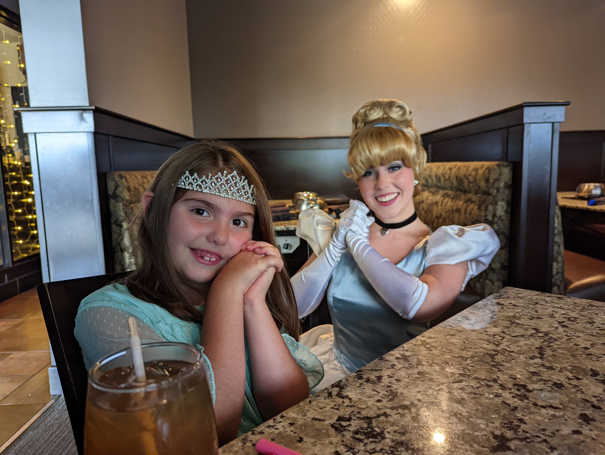 After the meet, Ryan dropped Olivia off for princess day at The Melting Pot. I had a tiara that I got for my 40th birthday so I put that on Olivia when we picked her up and she said it made her a real princess. She was super excited to ride in what she called "the fast car" and I'm not even gonna lie; I was super excited about that fast car, too! LOL Β When we got to the restaurant, it was less than 10 minutes before Cinderella came over to talk to Olivia. She told her she loved her tiara, they talked about kindness and school, and then she taught her the princess pose. Olivia had a blast cooking and dipping everything into all the sauces and of course, the adults enjoyed the food as well. π